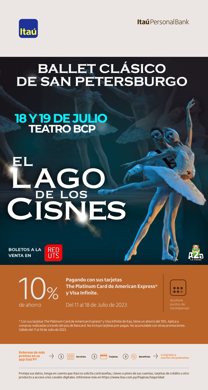 * Con sus tarjetas The Platinum Card de American Express® y Visa Infinite de Itaú, tiene un ahorro del 10%. Aplica a compras realizadas a través del pos de Bancard. No incluye tarjetas pre-pagas. No acumulable con otras promociones. Válido del 11 al 18 de Julio de 2023.