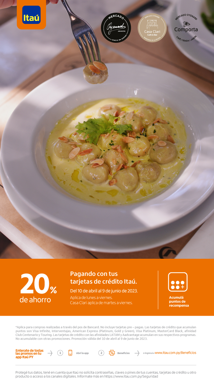 Del 10 de abril al 9 de junio de 2023. Pagando con tus tarjetas de crédito Itaú. Tenés 20% de ahorro.