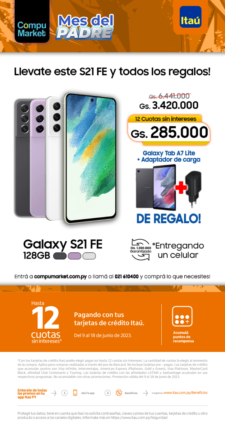 *Con tus tarjetas de crédito Itaú podés elegir pagar en hasta 12 cuotas sin intereses. El descuento aplica sobre el precio de lista. La cantidad de cuotas la elegís al momento de la compra. Aplica para compras realizadas a través del pos de Bancard. No incluye tarjetas pre – pagas. Las tarjetas de crédito que acumulan puntos son Visa Infinite, Interventajas, American Express (Platinum, Gold y Green), Visa Platinum, MasterCard Black, afinidad Club Centenario y Touring. Las tarjetas de crédito con las afinidades LATAM y Aadvantage acumulan en sus respectivos programas. No acumulable con otras promociones.